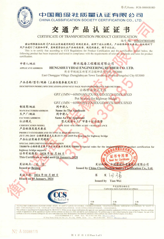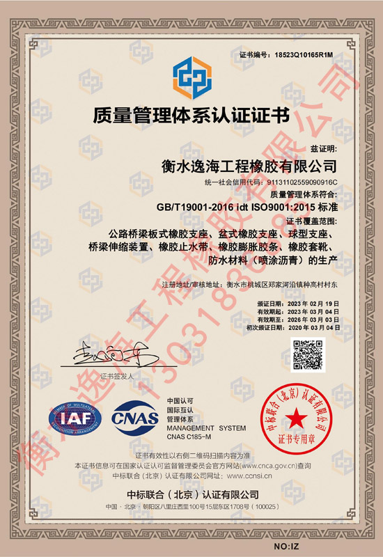 我公司主要产品为:公路桥梁板式橡胶支座;公路桥梁盆式支座系列;网架钢支座系列;球型支座系列;HDR系列高阻尼隔震橡胶支座、LNR系列水平分散型橡胶支座、摩擦摆式橡胶支座 、铅芯隔震橡胶支座;GQF、CD、SSFB、梳齿板式桥梁伸缩装置系列;喷涂橡胶沥青防水材料等桥梁配件产品。